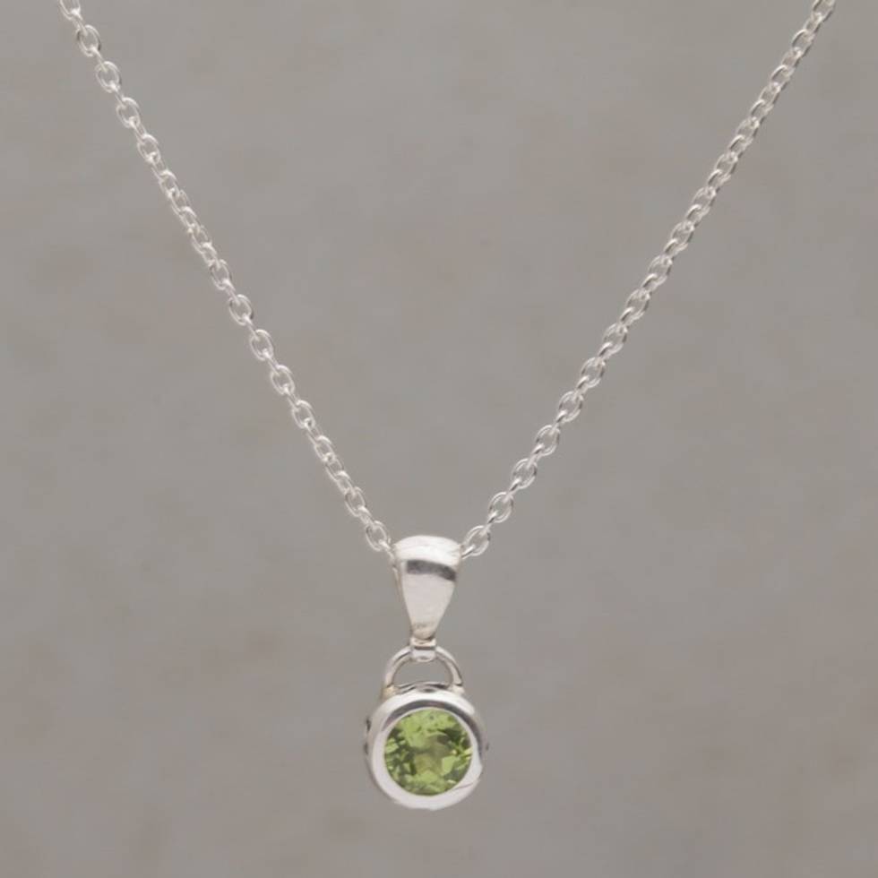 Peridot and Sterling Silver Pendant Necklace from Bali 'Glowing Paws' Item ID: 2671735216
