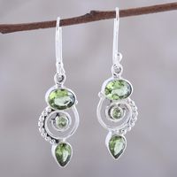 Peridot and Sterling Silver Spiral Dangle Earrings 'Meadow Labyrinth' Item ID: 2669925546