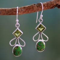 Peridot Comp Turquoise and Silver Artisan Crafted Earrings 'Bollywood Green' Item ID: 2671794932