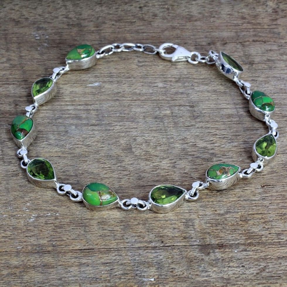 Peridot Composite Turquoise Link Bracelet from India 'Sunny Drops in Green' Item ID: 2671793290