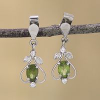 Peridot CZ Rhodium-Plated Sterling Silver Dangle Earrings 'Leafy Spade' Item ID: 2671790827
