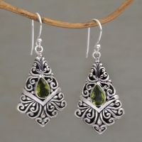 Peridot Dangle Earrings in Sterling Silver Settings 'Fanfare' Item ID: 2671734330