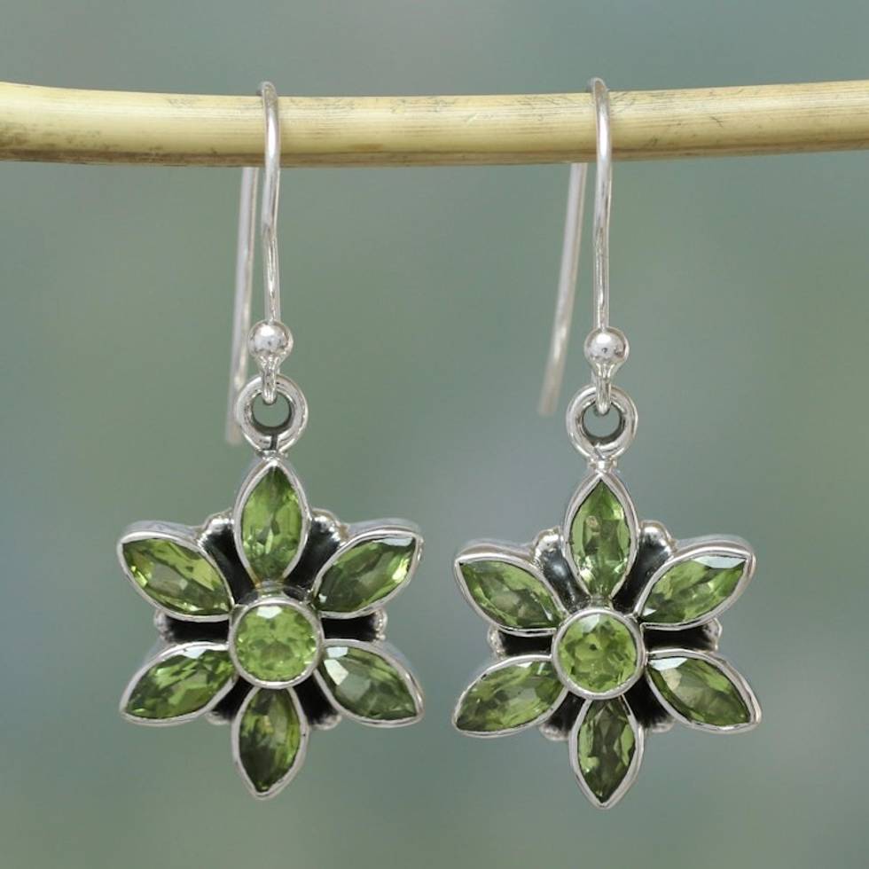 Peridot Earrings from Sterling Silver Flower Jewelry 'Daisy Beauty' Item ID: 2669924114
