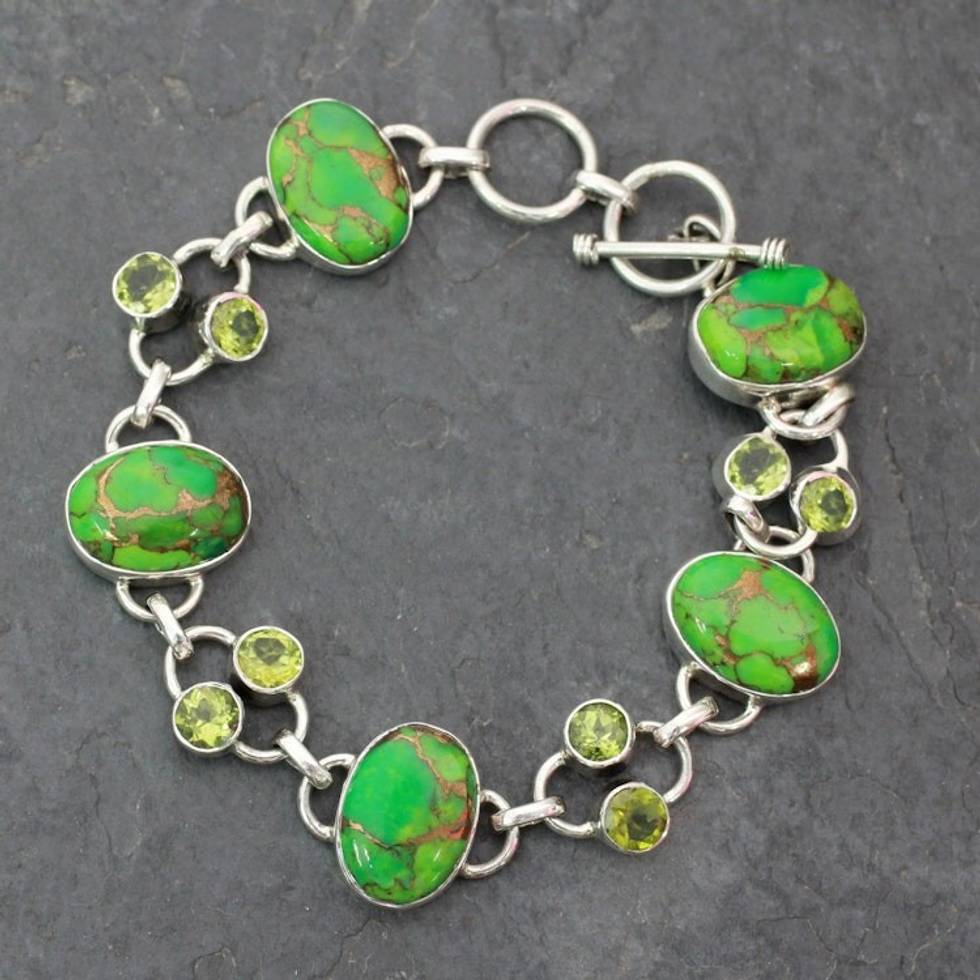 Peridot link bracelet 'Forest Pebbles' Item ID: 2669923836