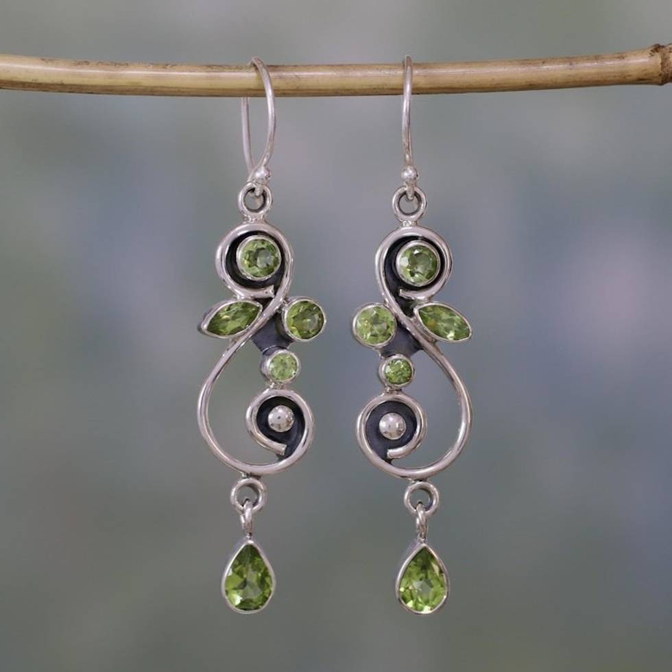 Peridot on Sterling Silver Floral Earrings Artisan Jewelry 'Verdant Vine' Item ID: 2671794661