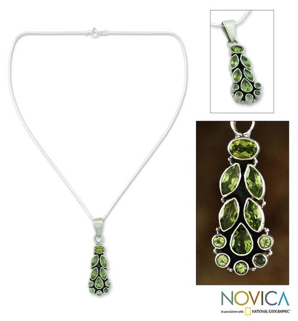 Peridot Pendant on Sterling Silver Necklace from India 'Summer Allure' Item ID: 2671618898