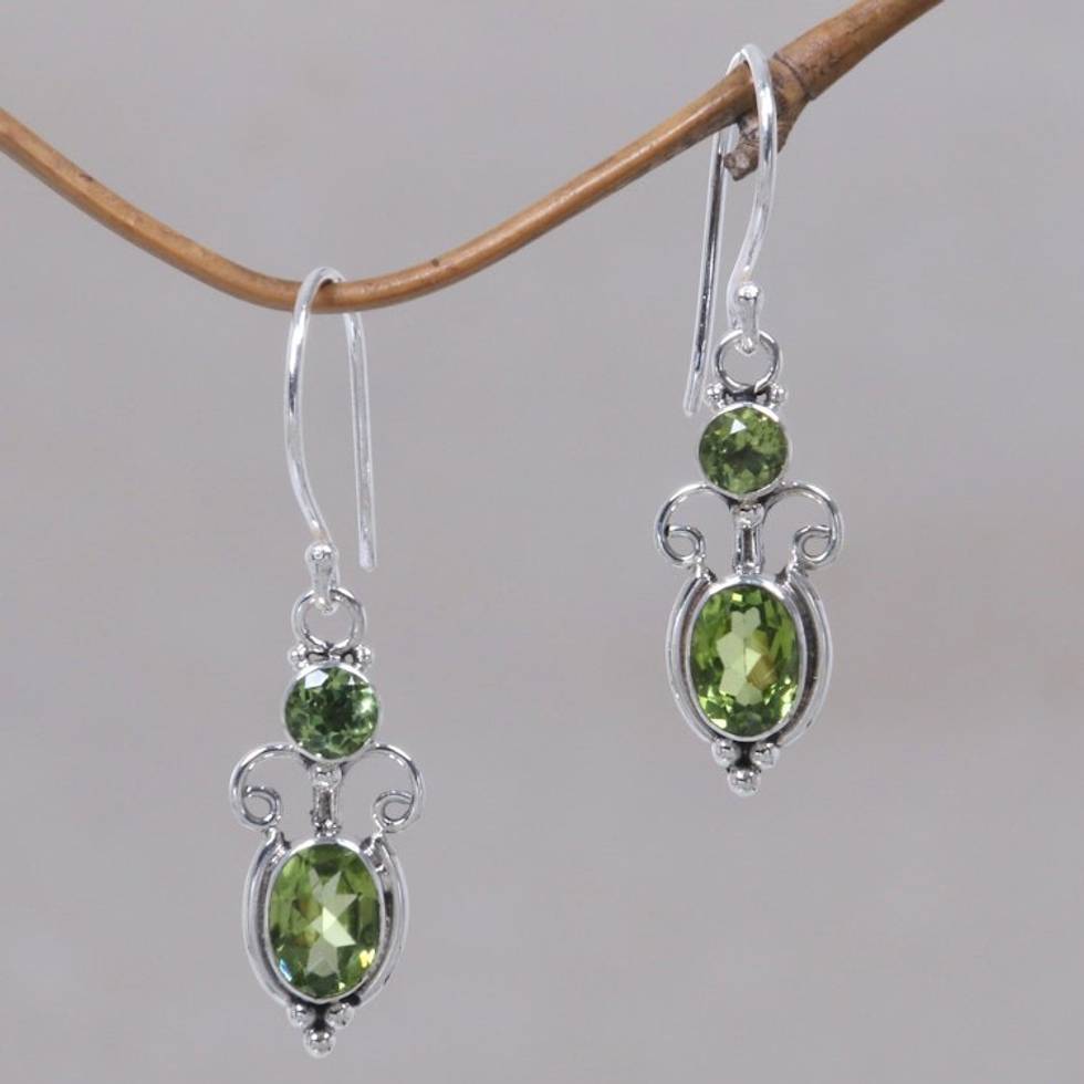 Peridot Sterling Silver Dangle Earrings 'Crown Princess' Item ID: 2671821205