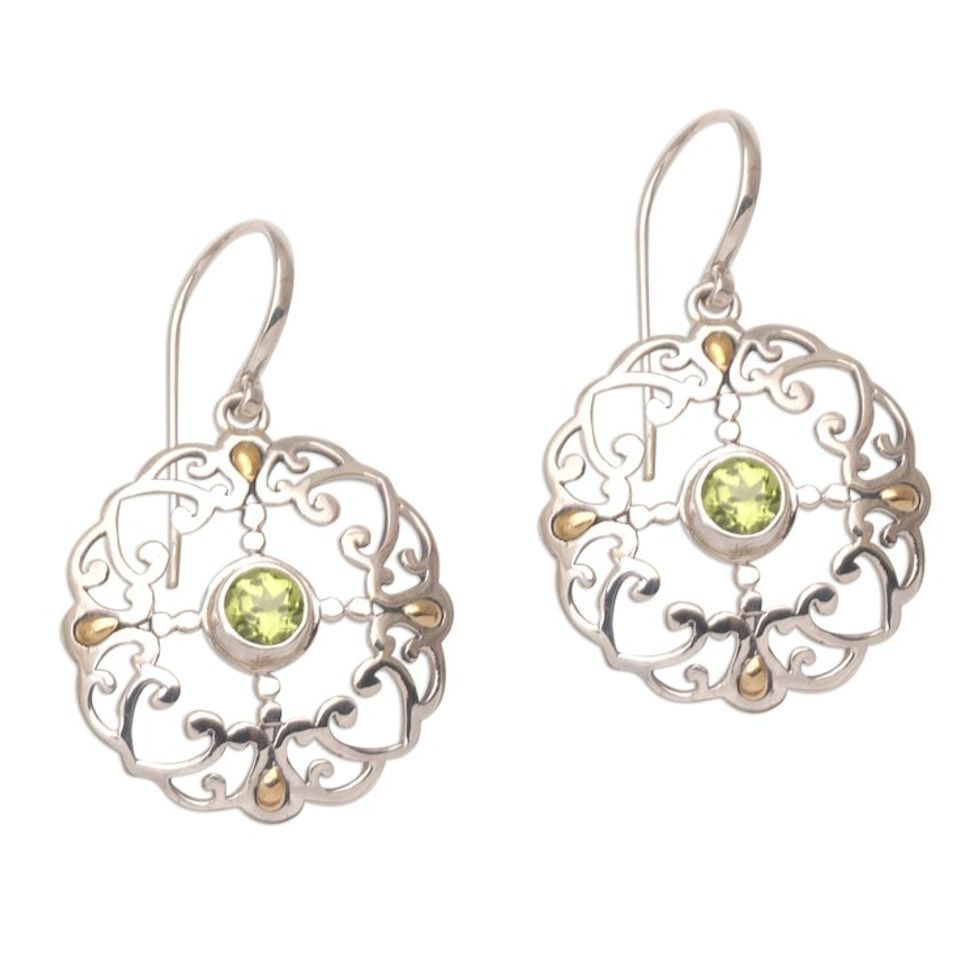 Peridot Sterling Silver Dangle Earrings with 18k Gold Accent 'Exquisite Flora' Item ID: 2671733203