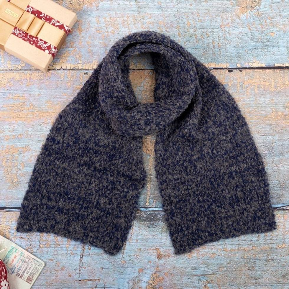 Peruvian Alpaca Blend Scarf in Blue and Grey Boucle 'Blue Boucle' Item ID: 2671403028
