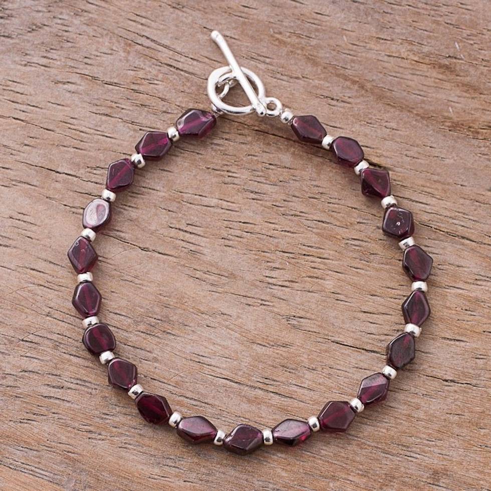 Peruvian Artisan-Made Natural Rhombus Garnet Beaded Bracelet 'Gemstone Rhombi' Item ID: 2671691546