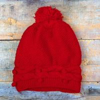 Peruvian Cable Knit Red Alpaca Blend Hat with a Pompon 'Roads in Red' Item ID: 2671697973