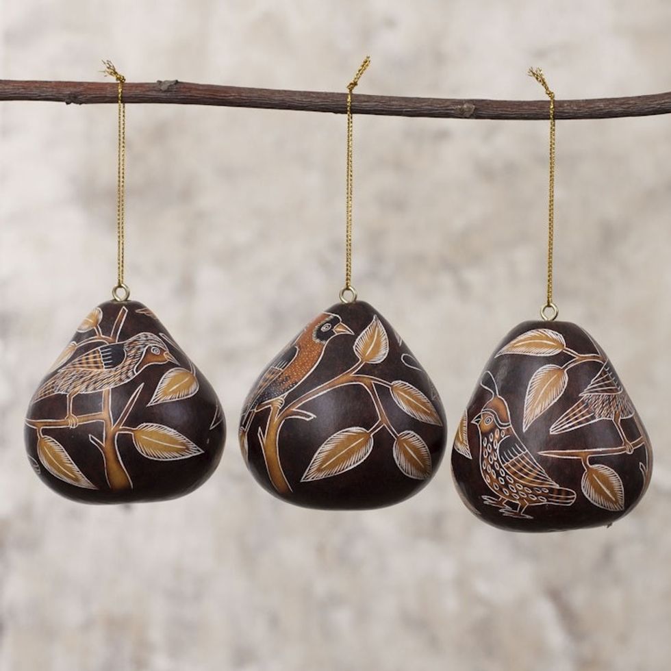 Peruvian Handmade Dried Mate Gourd Bird Ornaments set of 3 'Sun Birds' Item ID: 2669908311