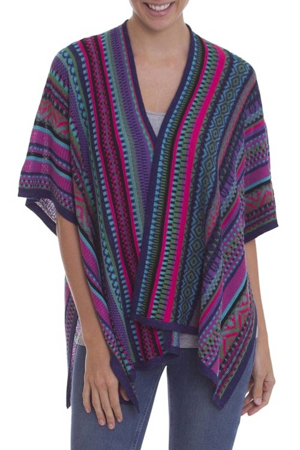 Peruvian Multicolored Acrylic and Alpaca Blend Ruana Kimono 'Peruvian Rainbow' Item ID: 2671819564