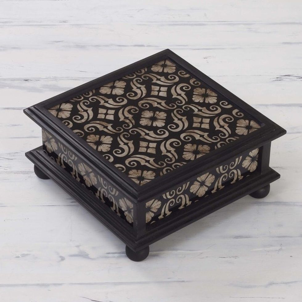 Peruvian Reverse Painted Glass Jewelry Box 'Silver Blossoms' Item ID: 2671401960