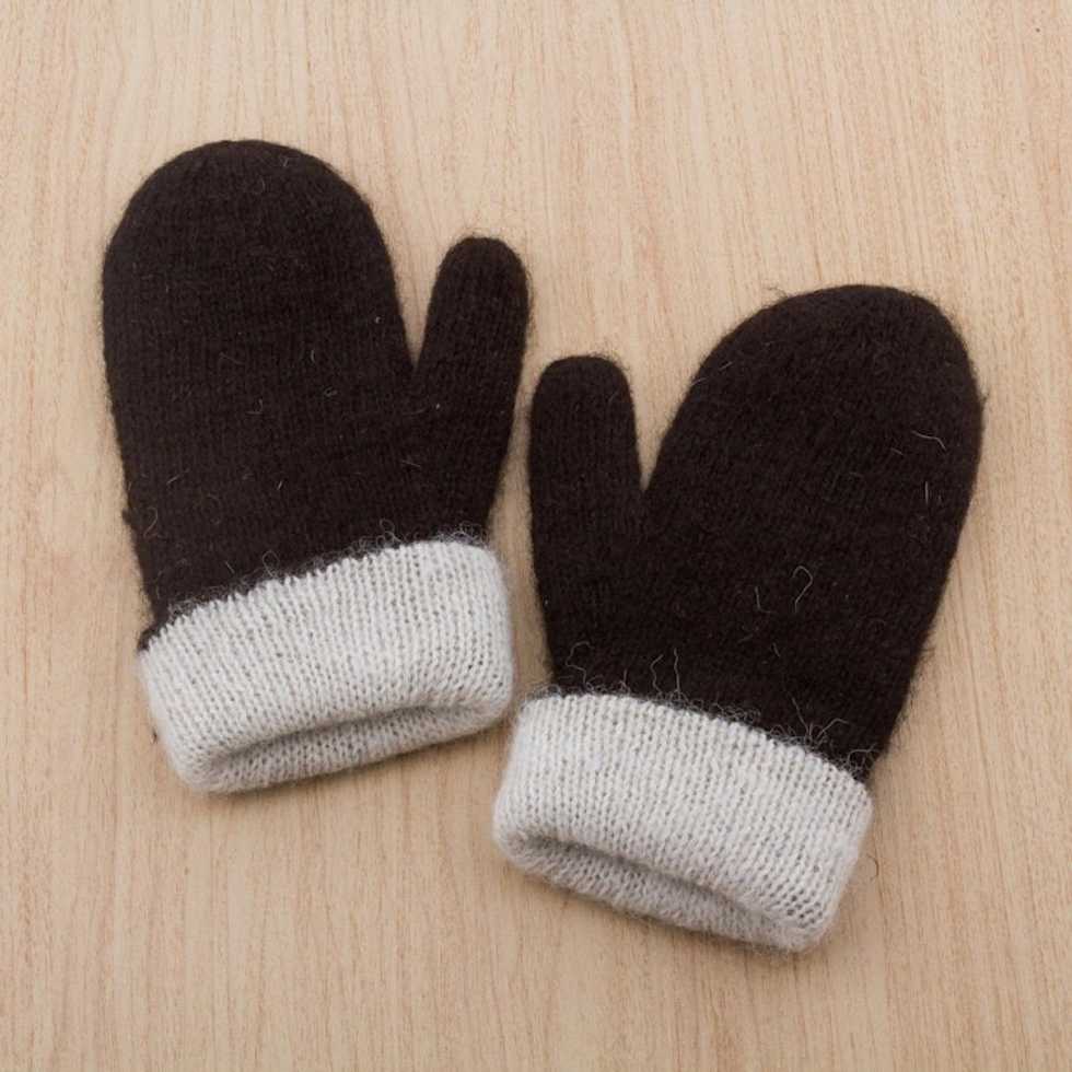 Peruvian Reversible 100 Alpaca Black and Eggshell Mittens 'Striking Contrast' Item ID: 2669907607