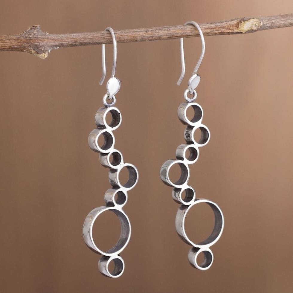 Peruvian Sterling Silver Dangle Earrings with Circle Shapes 'Bubble Waterfall' Item ID: 2669919683