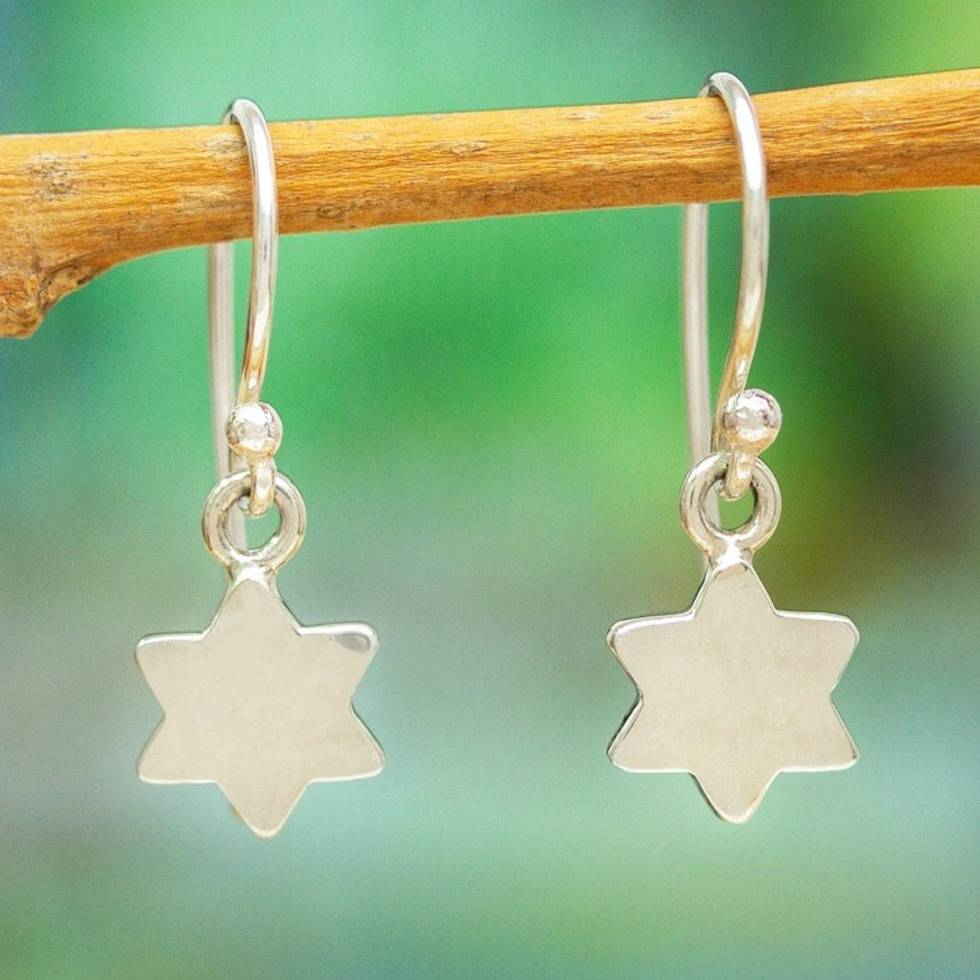Petite 950 Fine Silver Six-Pointed Star of David Earrings 'Six-Pointed Star' Item ID: 2671639113