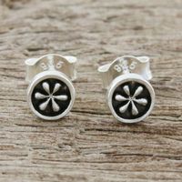 Petite Floral Sterling Silver Stud Earrings from Thailand 'Daisy Circles' Item ID: 2669926318