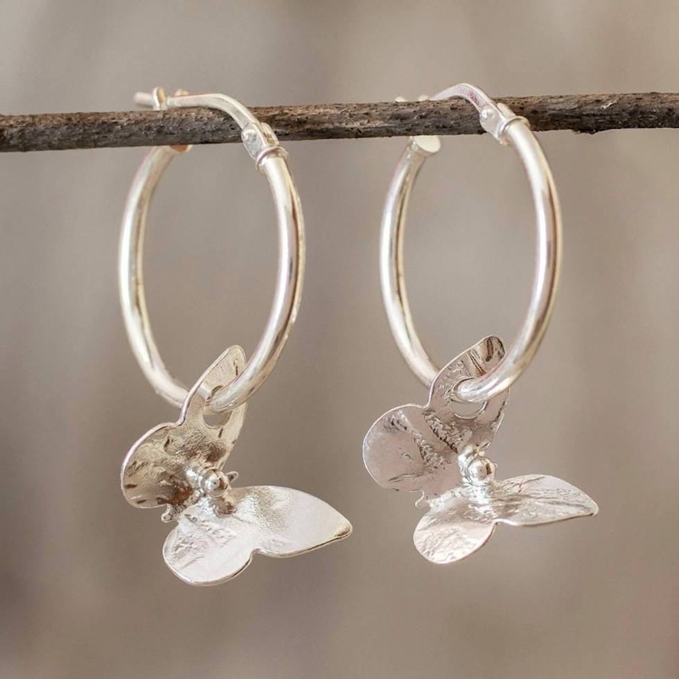 Petite Silver Butterfly Hoop Earrings from Costa Rica 'Shimmering Butterflies' Item ID: 2669923537