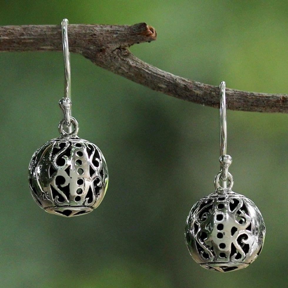 Petite Sterling Silver Bauble Earrings from Thailand 'Palace Lanterns' Item ID: 2671801347