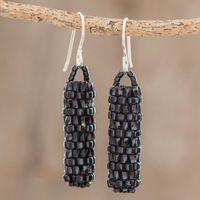 Pillar-Shaped Black Glass Beaded Dangle Earrings 'Black Pillars' Item ID: 2671777161