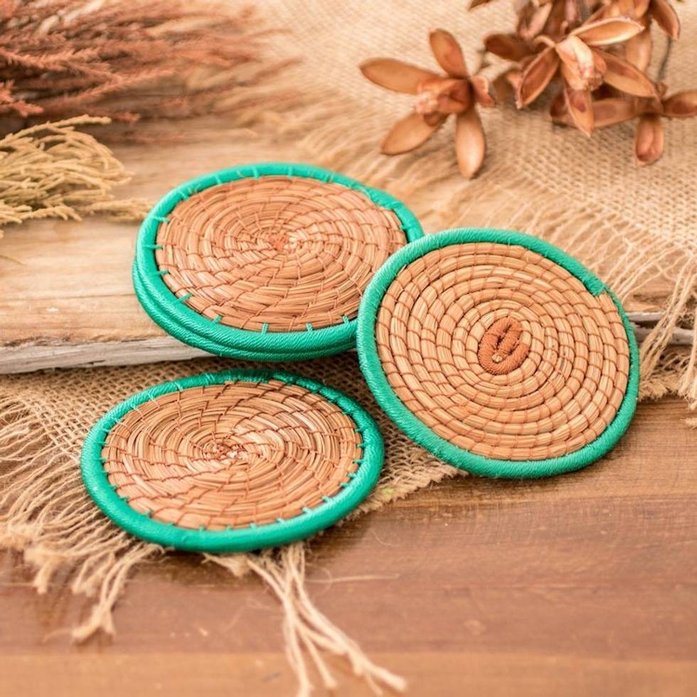 Pine Needle Polyester Green Coasters Set of 4 Guatemala 'Latin Toast in Green' Item ID: 2671778955