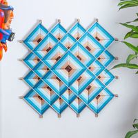 Pine Wood Handwoven Blue Wall Art with Geometric Motifs 'Blue Divinity' Item ID: 2671807584
