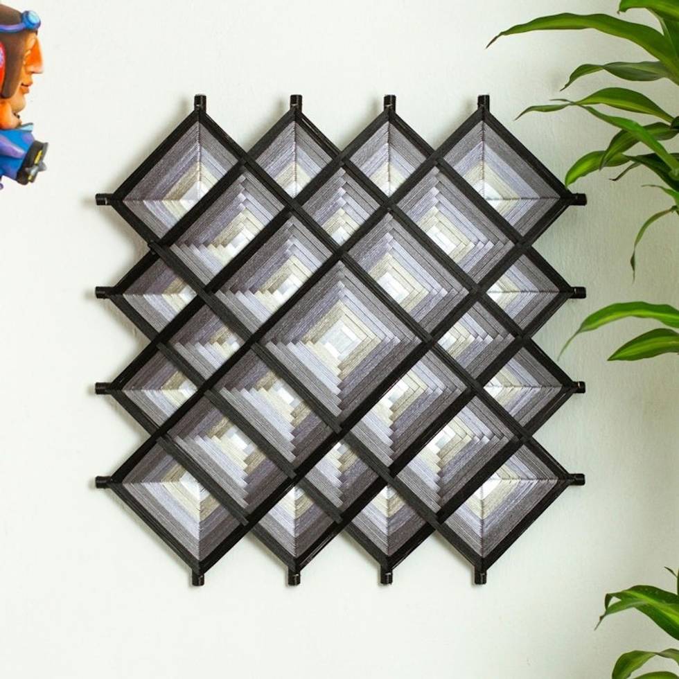 Pine Wood Handwoven Coal Wall Art with Geometric Motifs 'Coal Divinity' Item ID: 2671807560