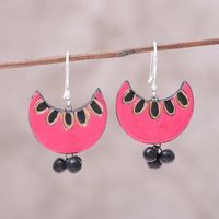 Pink and Black Crescent Moon Ceramic Dangle Earrings 'Pink Crescent' Item ID: 2669924867