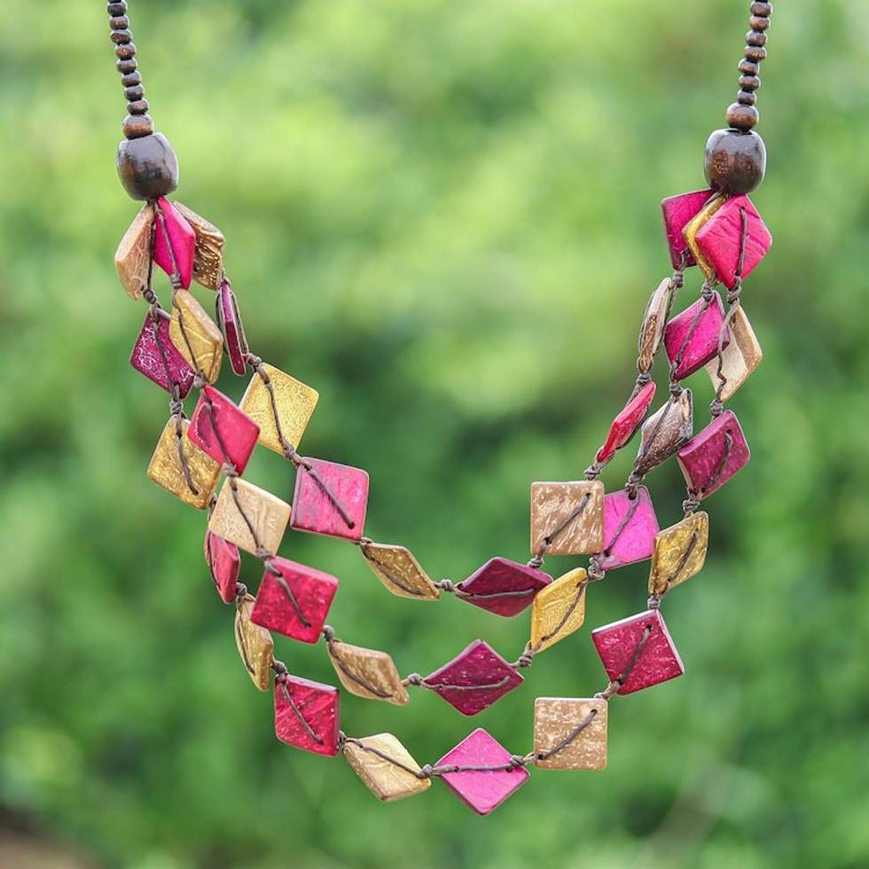 Pink and Golden Coconut Shell Beaded Strand Necklace 'Tender Diamonds' Item ID: 2671797017