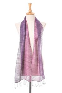 Pink and Purple Silk Scarf from Thailand 'Bold Orchid' Item ID: 2669894164