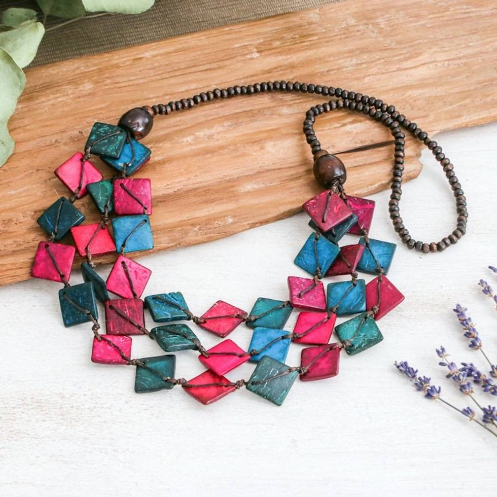Pink and Turquoise and Coconut Shell Beaded Strand Necklace 'Dreamy Diamonds' Item ID: 2671796831