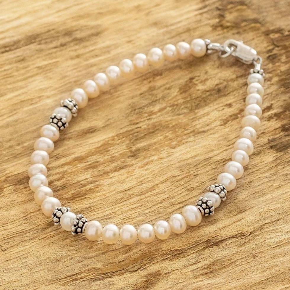 Pink and White Pearl Sterling Silver Accent Bracelet 'Rose Clouds' Item ID: 2671772010