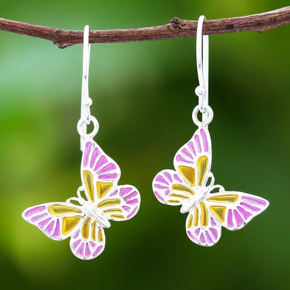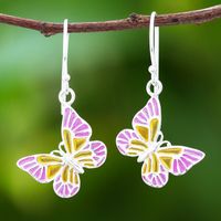 Pink and Yellow Sterling Silver Butterfly Dangle Earrings 'Sweet Butterflies' Item ID: 2671799366