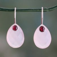Pink Chalcedony and Garnet Gemstone Drop Earrings 'Rosy Outlook' Item ID: 2676664075