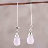 Pink Chalcedony and Sterling Silver Teardrop Dangle Earrings 'Graceful Tear in Pink' Item ID: 2671792201