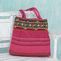 Pink Cotton Shoulder Bag with Multicolor Embroidery 'Majestic Pink' Item ID: 2671793868