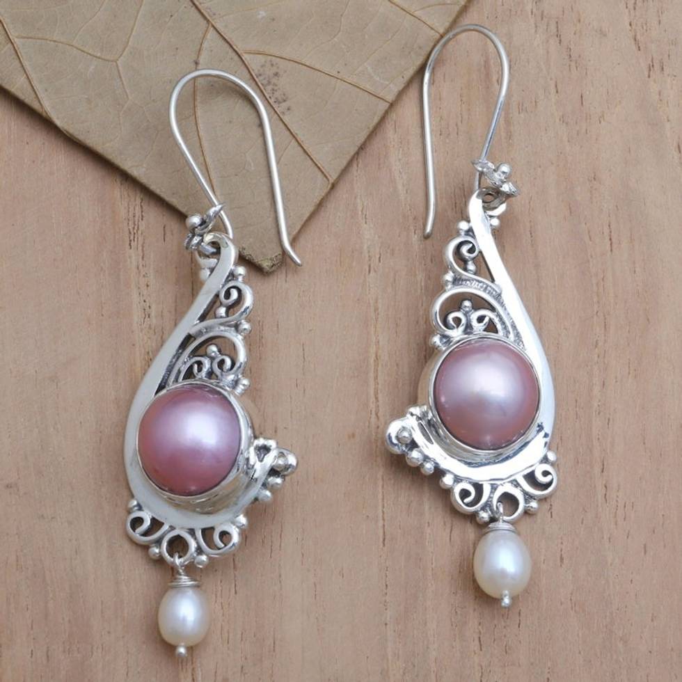 Pink Cultured Pearl and Sterling Silver Dangle Earrings 'Candlelit Dinner' Item ID: 2671748368