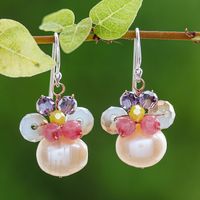 Pink Cultured Pearl Dangle Earrings with Butterfly Motif 'Butterfly Party in Pink' Item ID: 2671641389