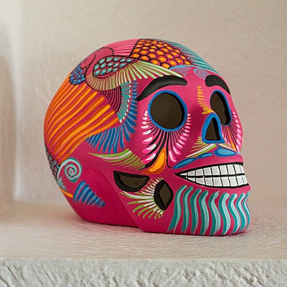 Pink Decorative Hand Painted Ceramic Skull from Mexico 'Death and Tradition' Item ID: 2671808867