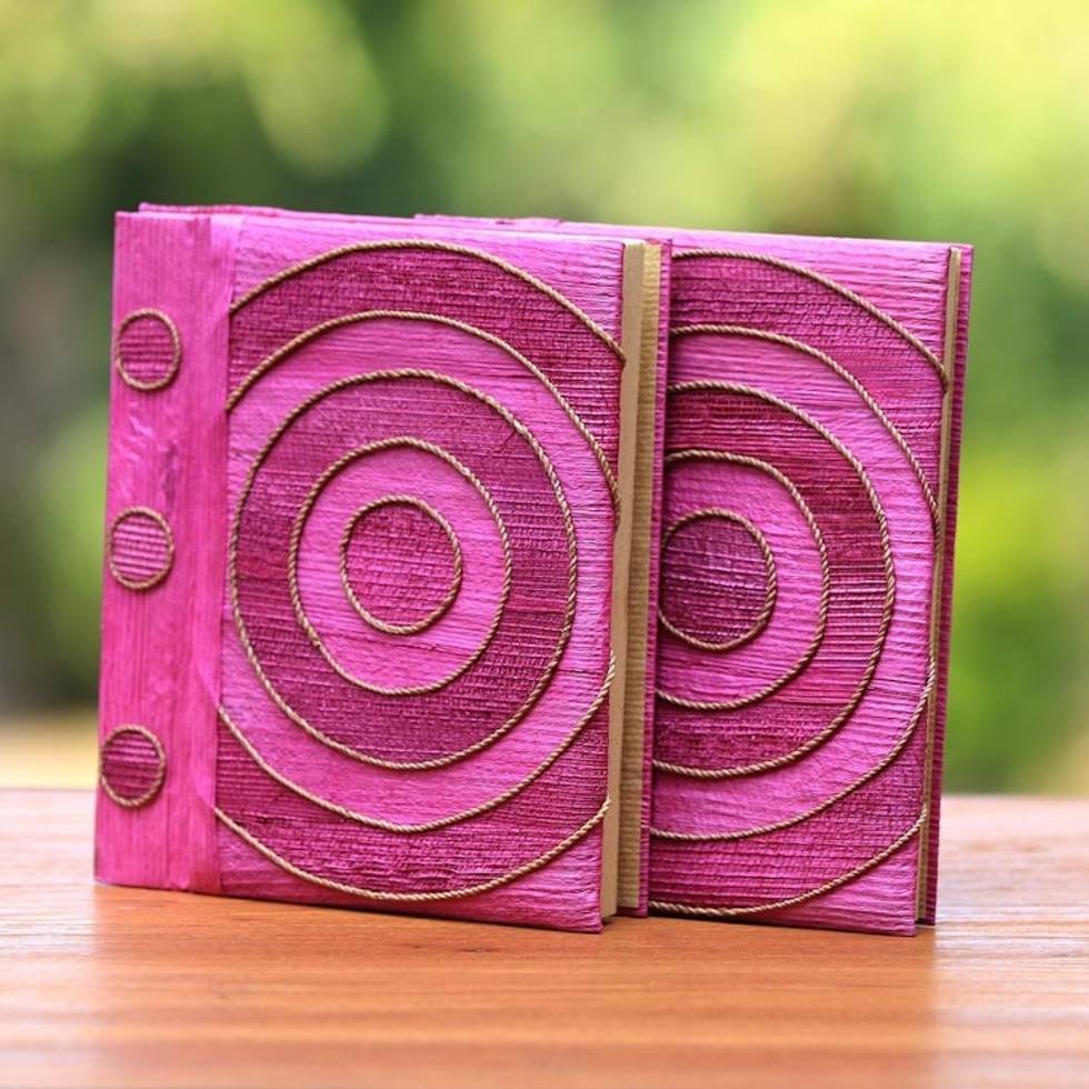 Pink Handmade Natural Fiber Notebooks Pair 'Hypnotic Rose' Item ID: 2671700796
