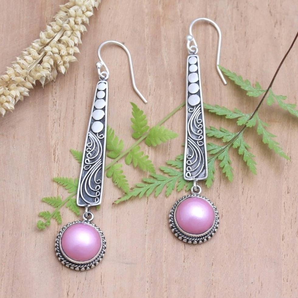 Pink Mabe Pearl and Sterling Silver Dangle Earrings 'Like a Melody in Pink' Item ID: 2671747660