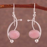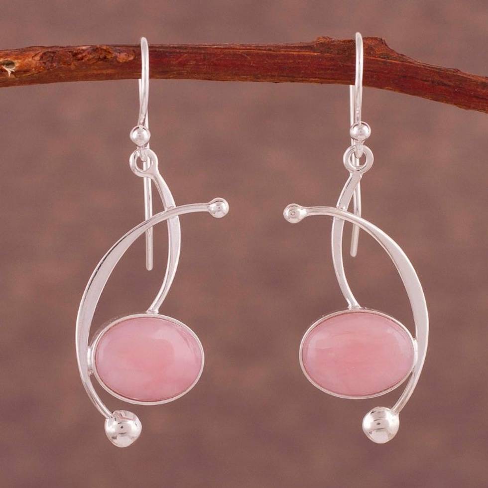 Pink Opal and Sterling Silver Dangle Earrings from Peru 'Crescent Eyes' Item ID: 2669919384