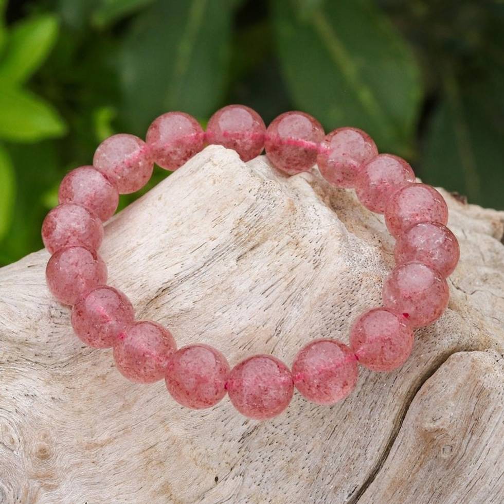 Pink Quartz Beaded Stretch Bracelet 'Sugar Pill in Strawberry' Item ID: 2671800479