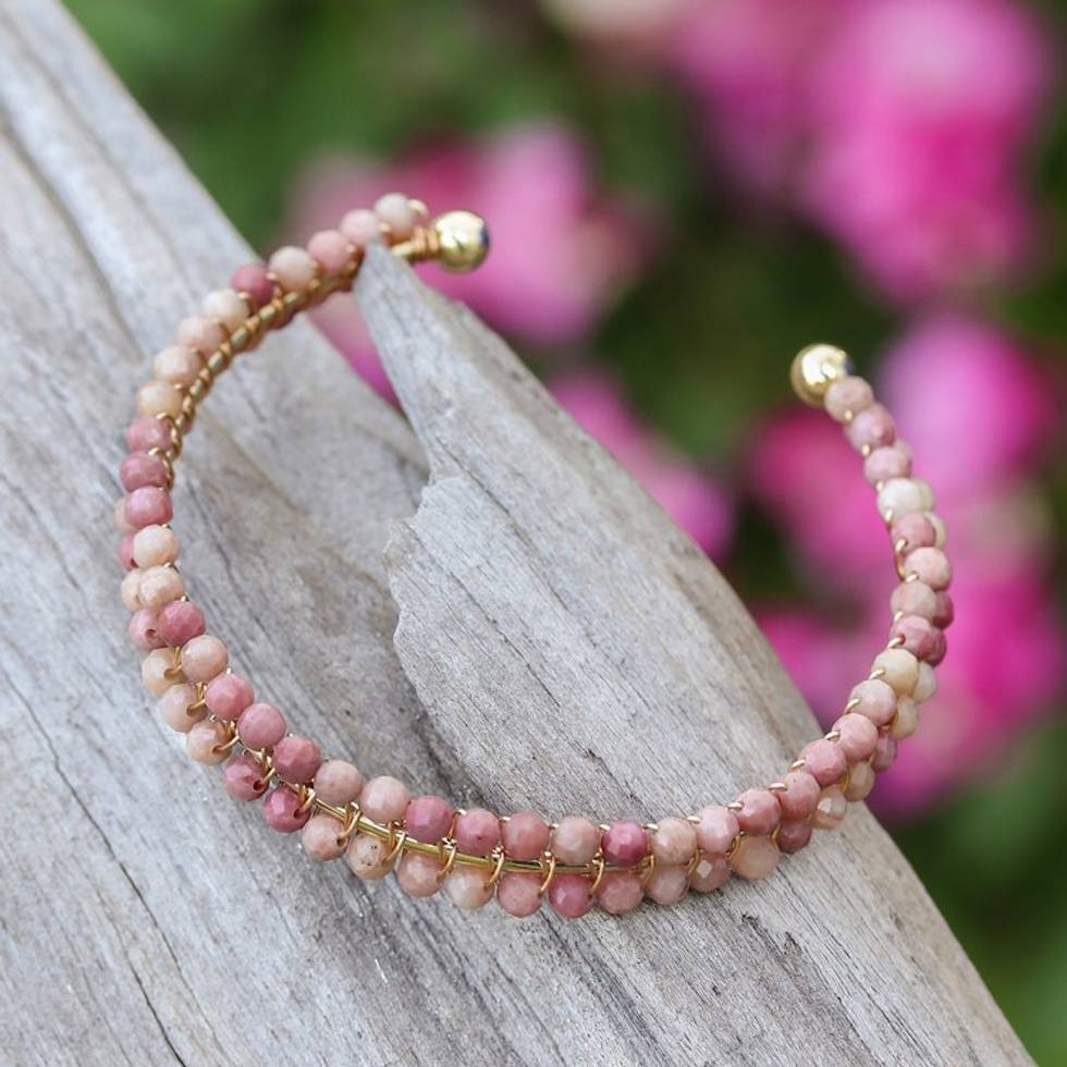 Pink Rhodochrosite Beaded Cuff Bracelet Handmade in Thailand 'Life of Emotions' Item ID: 2671646634