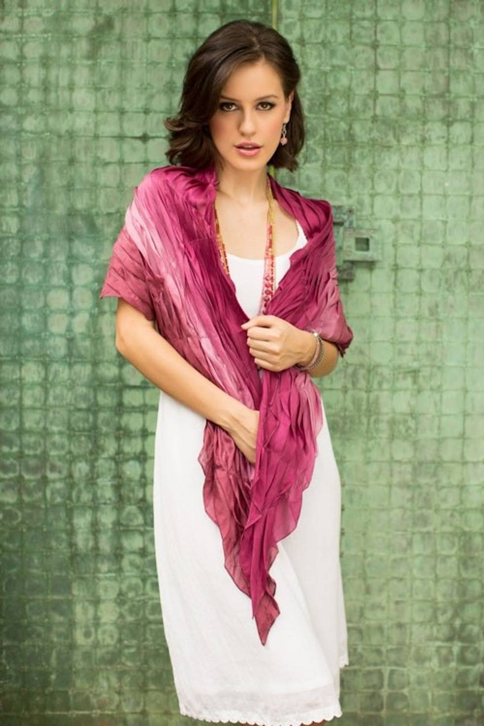 Pleated Ombre Silk Scarf 'Rose Magnificence' Item ID: 2671641160