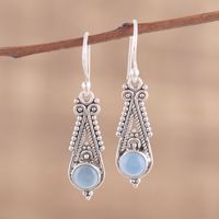 Pointed Chalcedony Dangle Earrings from India 'Regal Peaks' Item ID: 2671790428