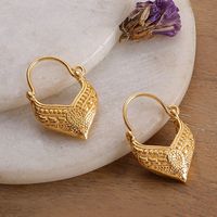 Pointed Textured 22k Gold-Plated Hoop Earrings from India 'Radiant Dew' Item ID: 2671623756
