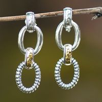 Polished 18k Gold-Accented Sterling Silver Dangle Earrings 'Triple Energy' Item ID: 2671763137