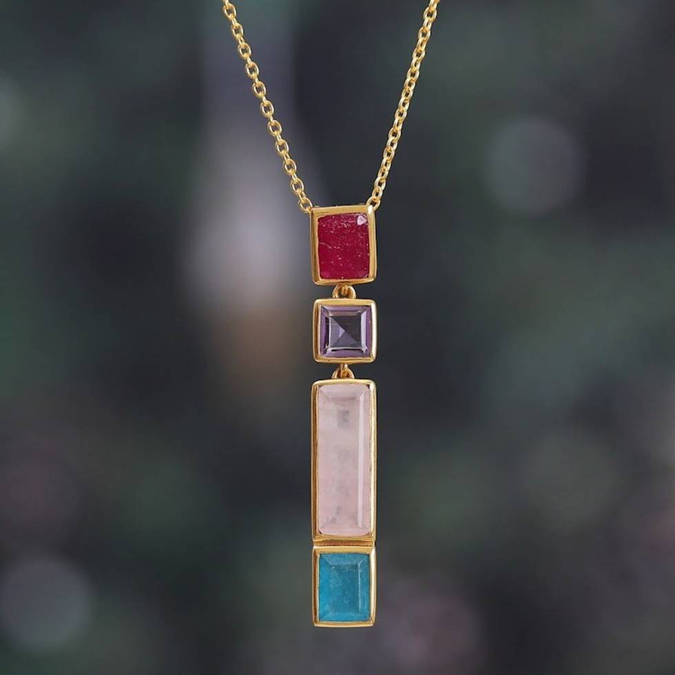 Polished 18k Gold-Plated Multi-Gemstone Pendant Necklace 'Vibrant Me' Item ID: 2671782157